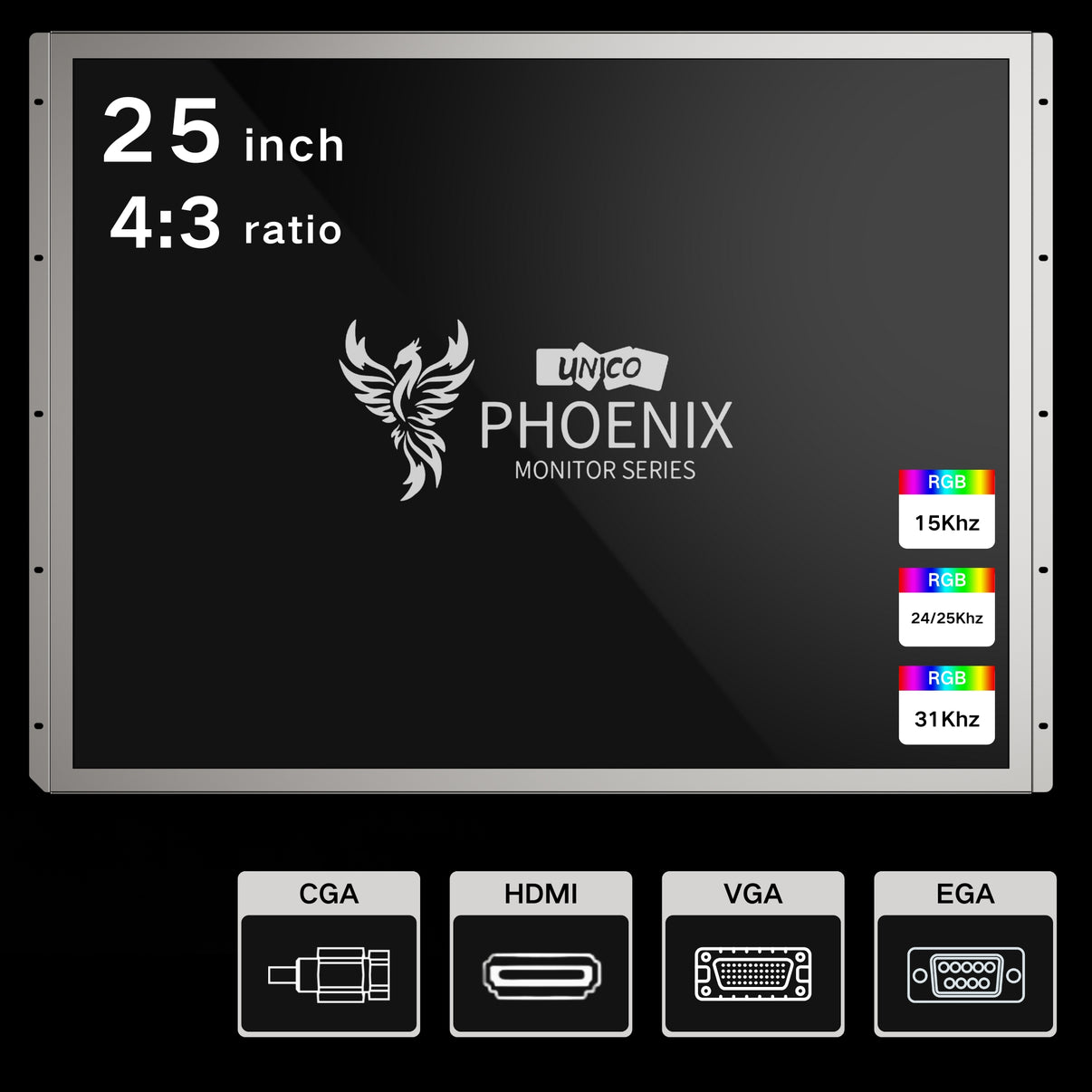 Replace your old outdated or burn-in CRT monitors with a Unico Phoenix Monitor Series 4: 3 LCD monitor and give your games life again with our easy to install CRT replacement LCD.